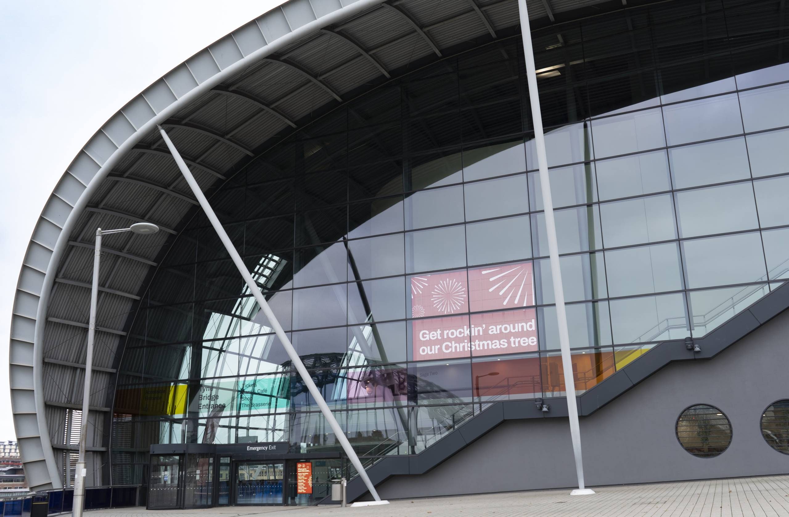 Beneath the roof – a view of the entrance arch by our Tyne Bridge entrance and the side of Barbour Balcony and Sage Two bar and venue.