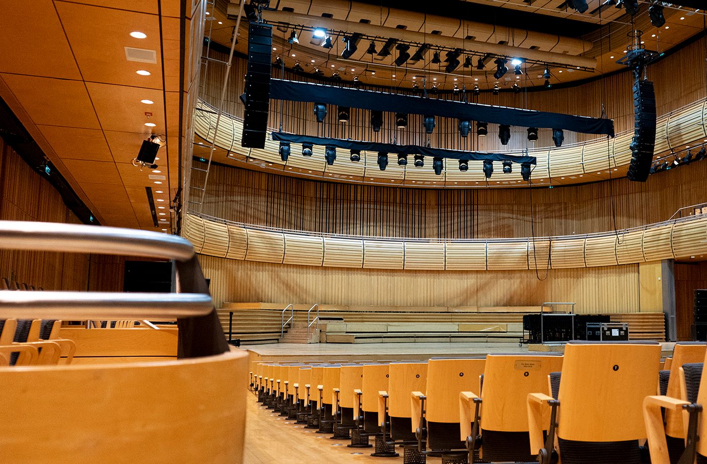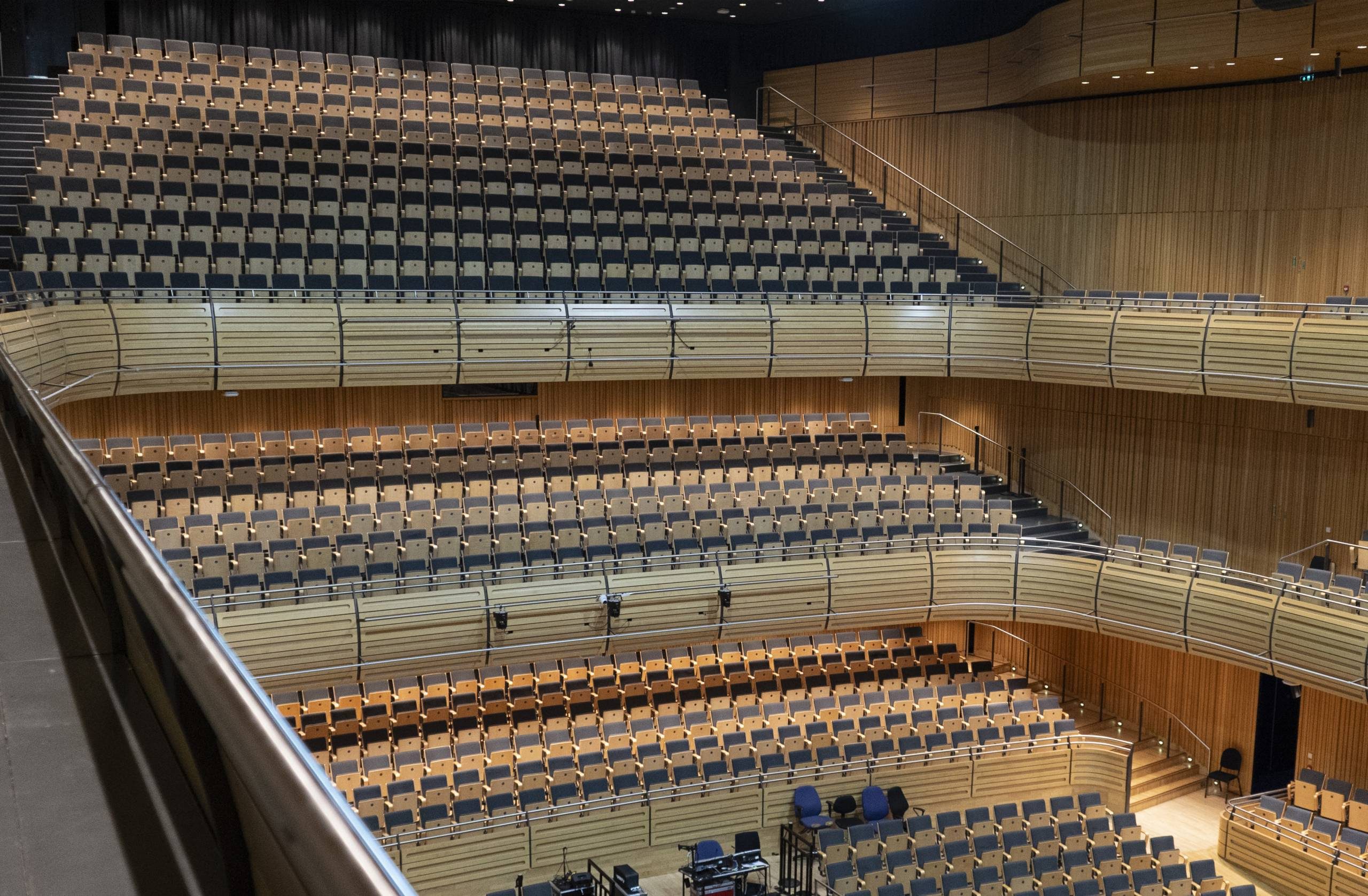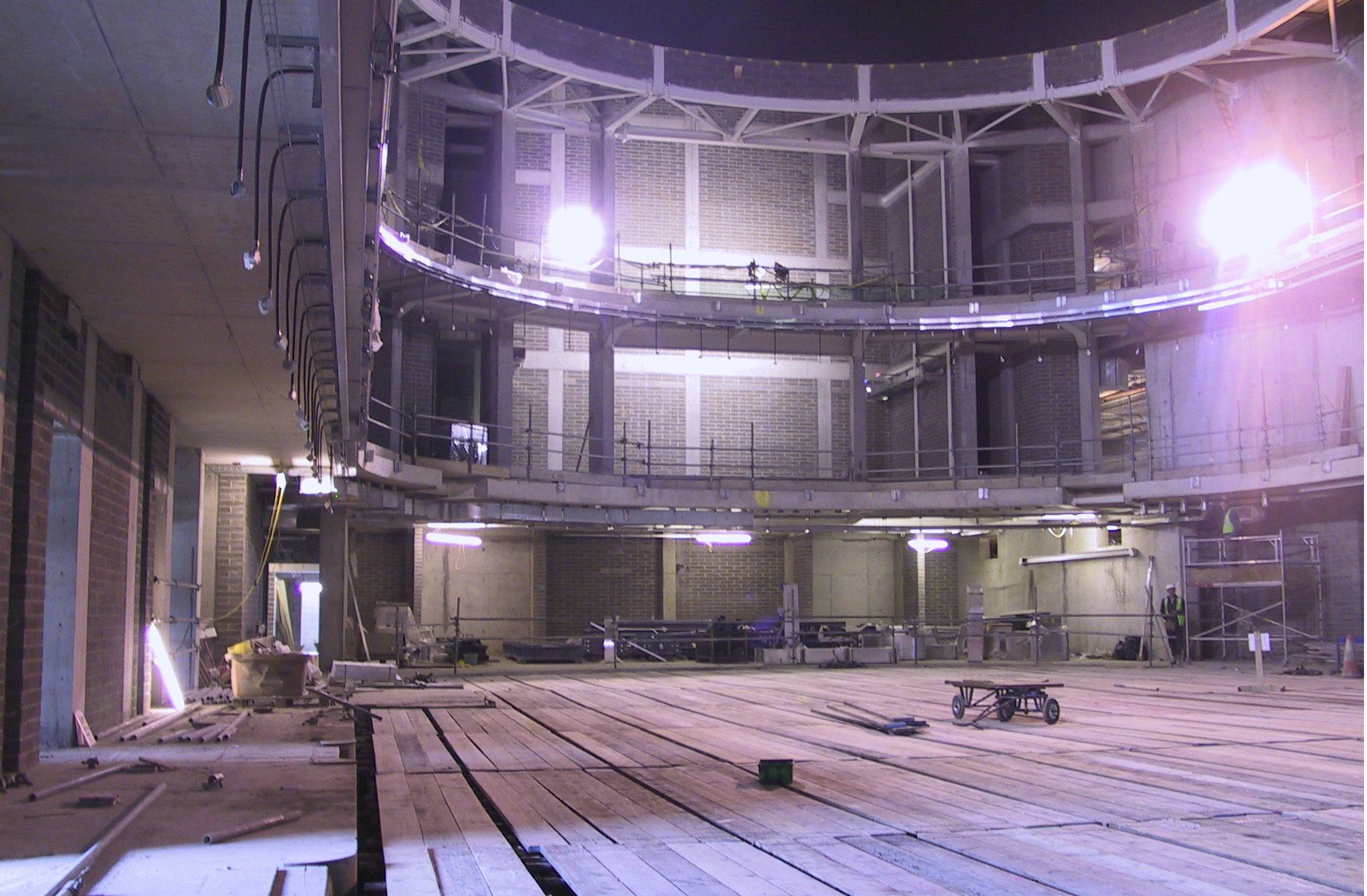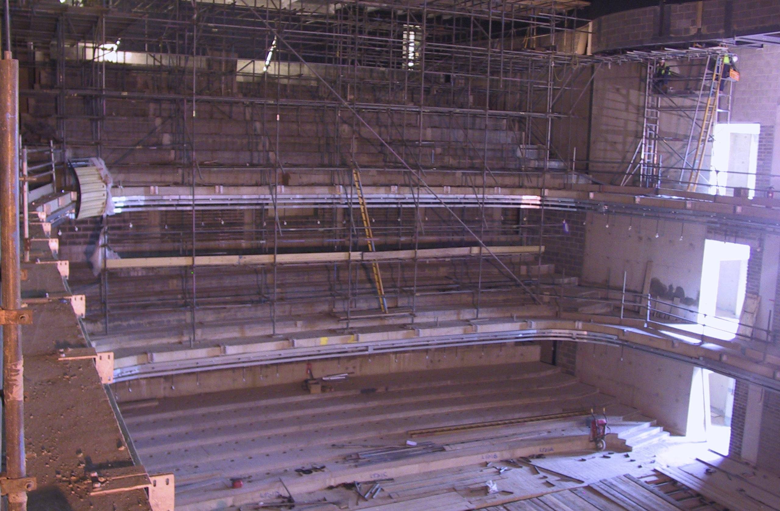 A look inside Sage One concert hall from the stalls, before the wood panelling, seats, and acoustic panels are installed.