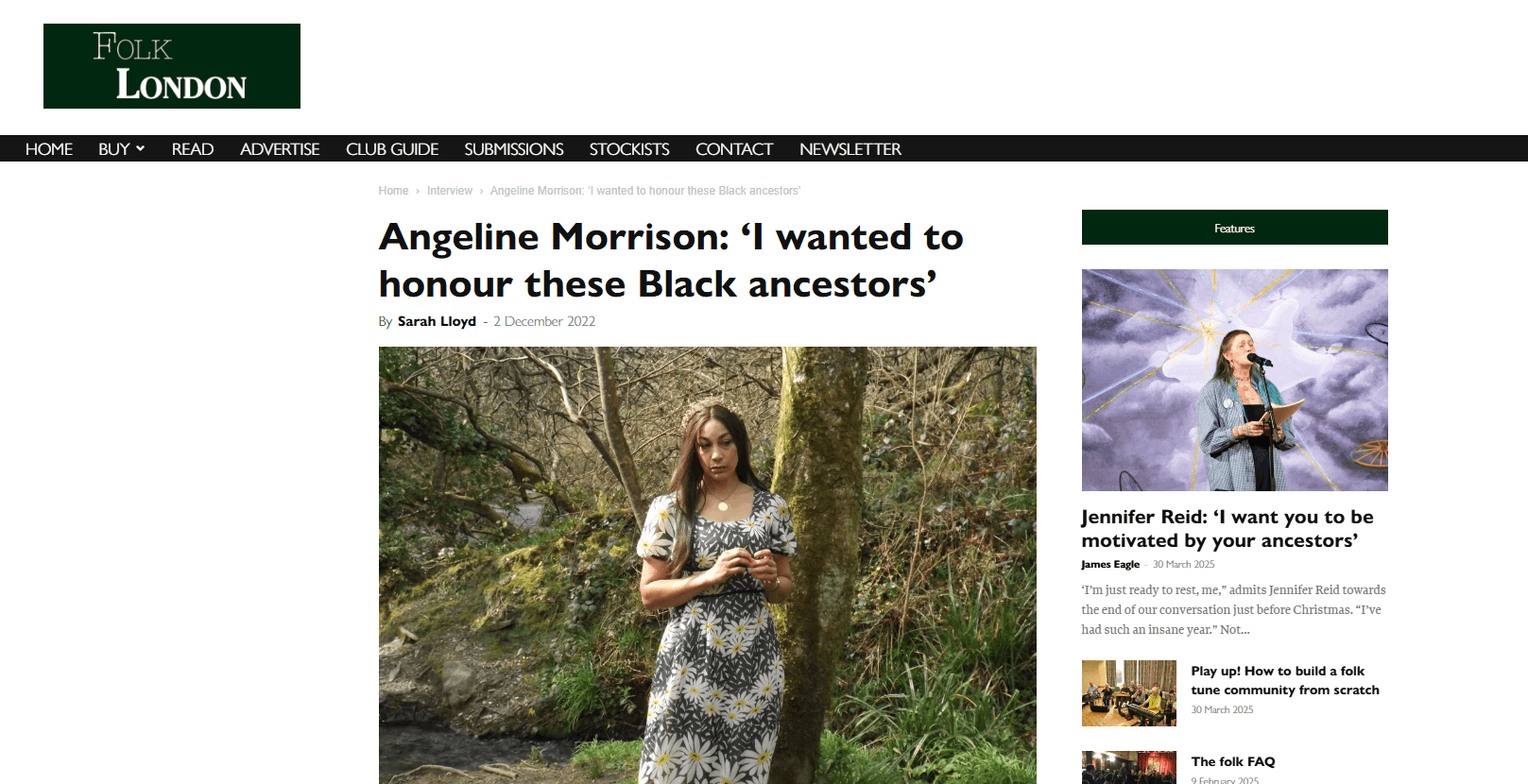Find out more about Angeline Morrison and her album The Sorrow Songs: Folk Songs Of Black British Experience in this interview with Folk London.